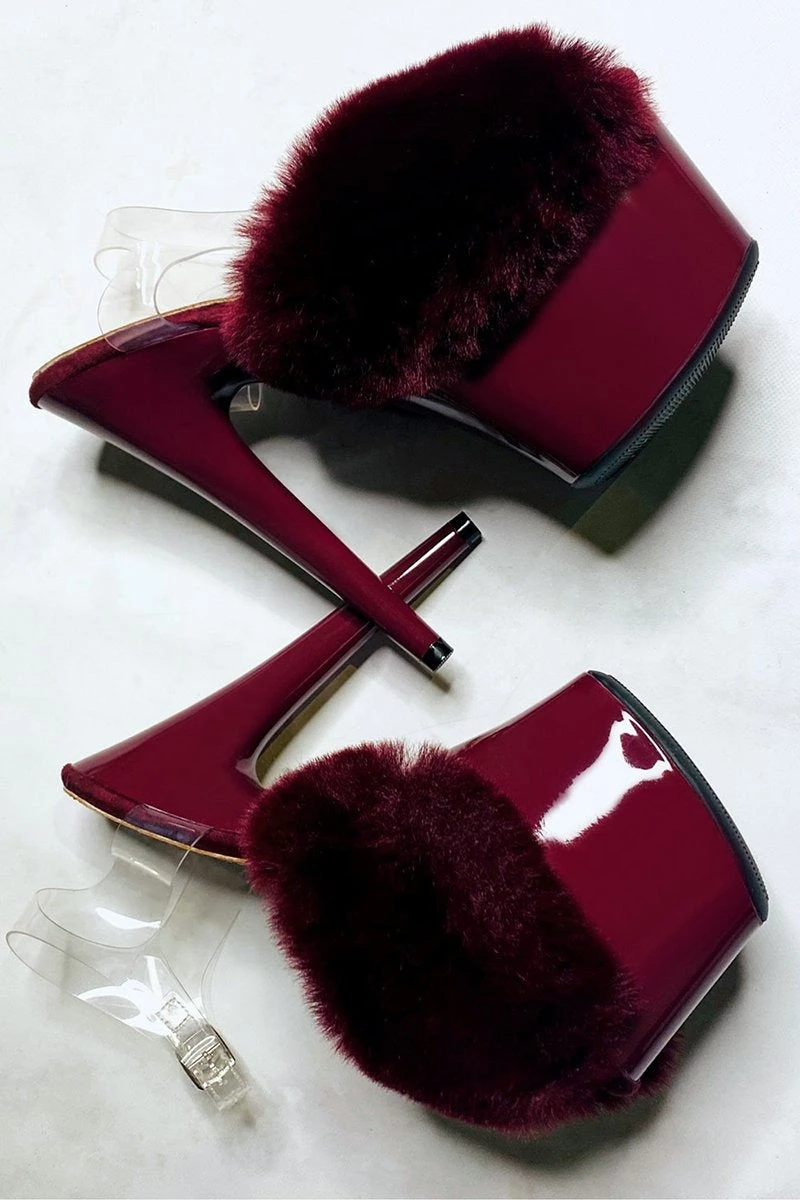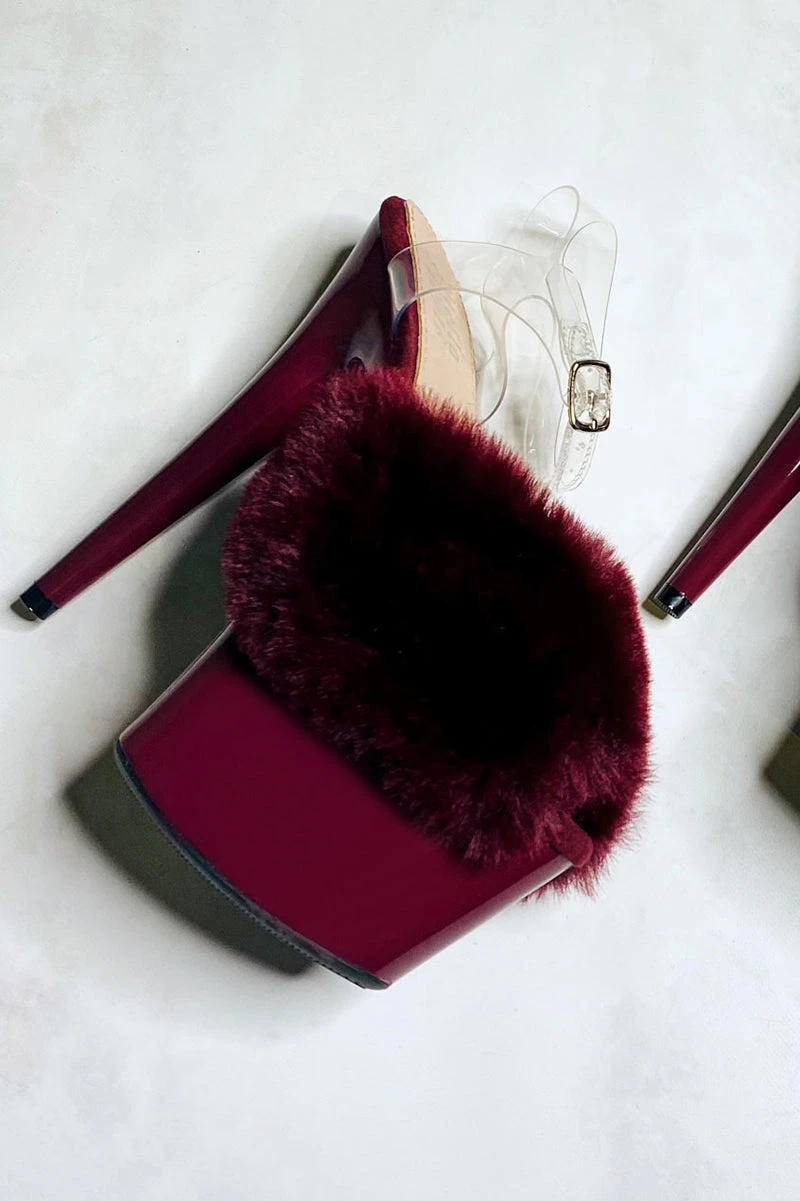 SleekĀ Merlot RedĀ platform and the softest faux fur, weāve levelled up your casual slides!