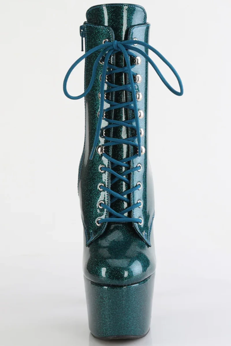 - Teal Glitter Platform, Lace-Up Front Ankle Boot, Inside Zip Closure