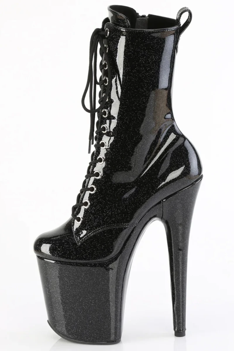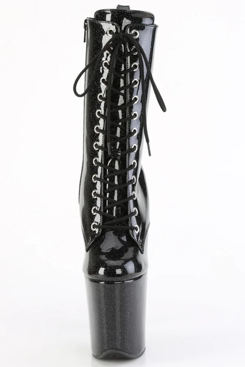 - Black GlitterĀ Platform | Lace-Up Front Ankle Boot | Inside Zip Closure
