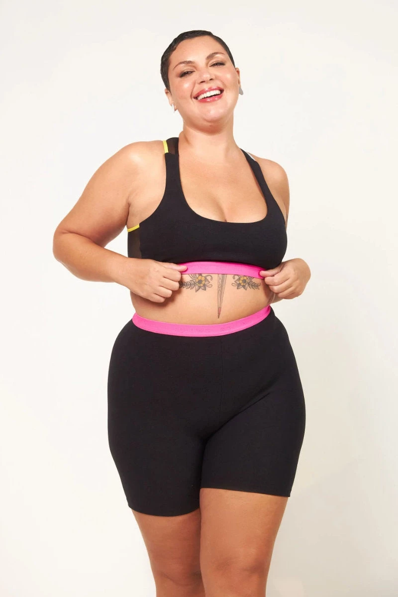 High waisted Biker Shorts featuring a custom Rolling neon pink waistband. Layer with a cute oversized T for a casual look off the pole.